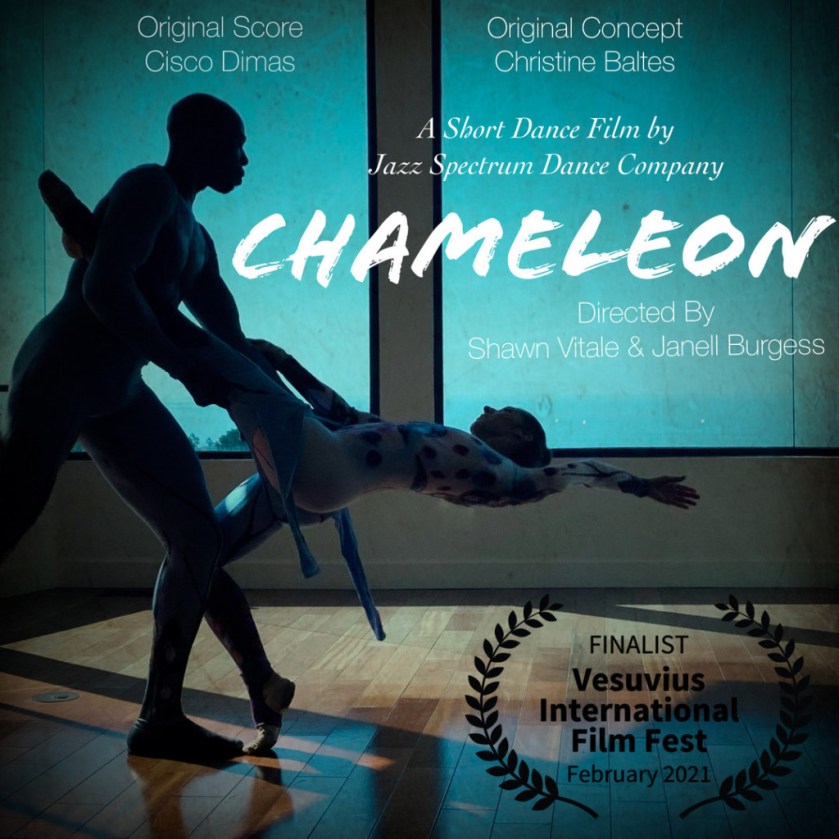 “Chameleon” is a transformative blend of two spirits becoming one. Representing the continuous re-inventing of relationship, it evokes and awakens both feelings of submissiveness & sensuality. Originally created as an ensemble dance for stage work, today, Choreographer and Artistic Director of Jazz Spectrum Dance Company, Janell Burgess has re-invented “Chameleon” into a beautiful pas de deux for film. Ms. Burgess worked closely with composer Cisco Dimas to create new & original music specifically for this dance for film. “Chameleon” premiered in October of 2020 at PUSHfest Global Online presented by Raissa Simpson, Artistic Director of Push Dance Company, San Francisco, CA.